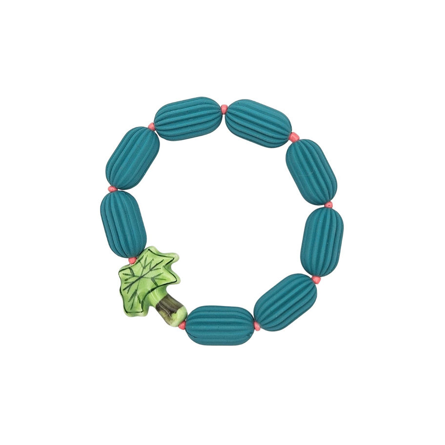 Kinderarmbandje groen/blauw met palmboompje. Helemaal uniek, want hier is er maar eentje van. Onderdeel van de serie sweets.